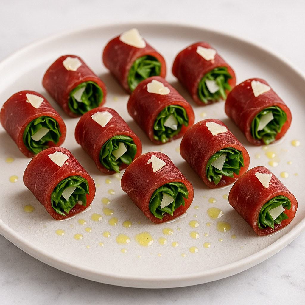 → Ricetta completa: - Bresaola roll con rucola, grana e citronette