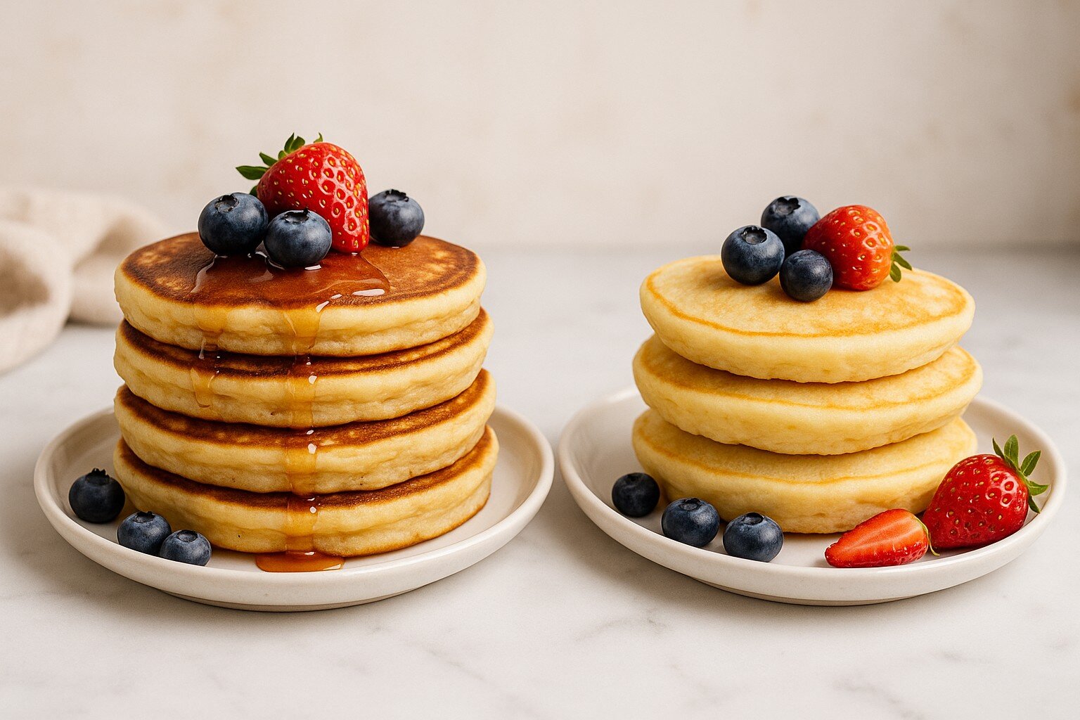 - Versione senza lievito: perfetta per chi cerca un pancake naturale e leggero, ma ricorda che vanno serviti subito perché tendono a sgonfiarsi in fretta.