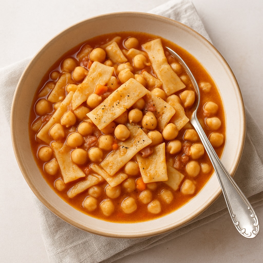L’accoppiata pasta e legumi è uno dei capisaldi della cucina abruzzese: un piatto che sa di casa, di domeniche lente e di profumi antichi. I ceci, considerati un tempo “la carne dei poveri”, sono in realtà un alimento prezioso, ricco di proteine vegetali, vitamine e fibre. Uniti alle sagne fresche – pasta fatta a mano solo con acqua e farina – danno vita a una zuppa rustica, equilibrata e incredibilmente nutriente.