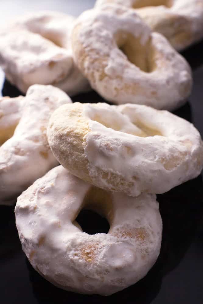 Le ciambelle ottenute si fanno prima bollire, quindi si incidono lungo tutto il bordo esterno, si finiscono di cuocere in forno fino a doratura e si glassano con ghiaccia reale. Facili da preparare, i ginetti sono ottimi per la colazione, come snack durante la giornata oppure da sgranocchiare a fine pasto con vini bianchi secchi.