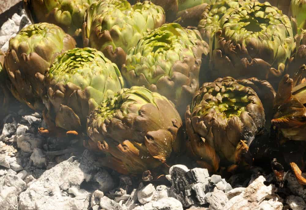 La ricetta originale prevede che l’olio debba riempire completamente il cuore dei carciofi, che, una volta posti tra i carboni ardenti, il suo lento rilascio provocherà il fumo che conferirà ai carciofi un aroma unico.