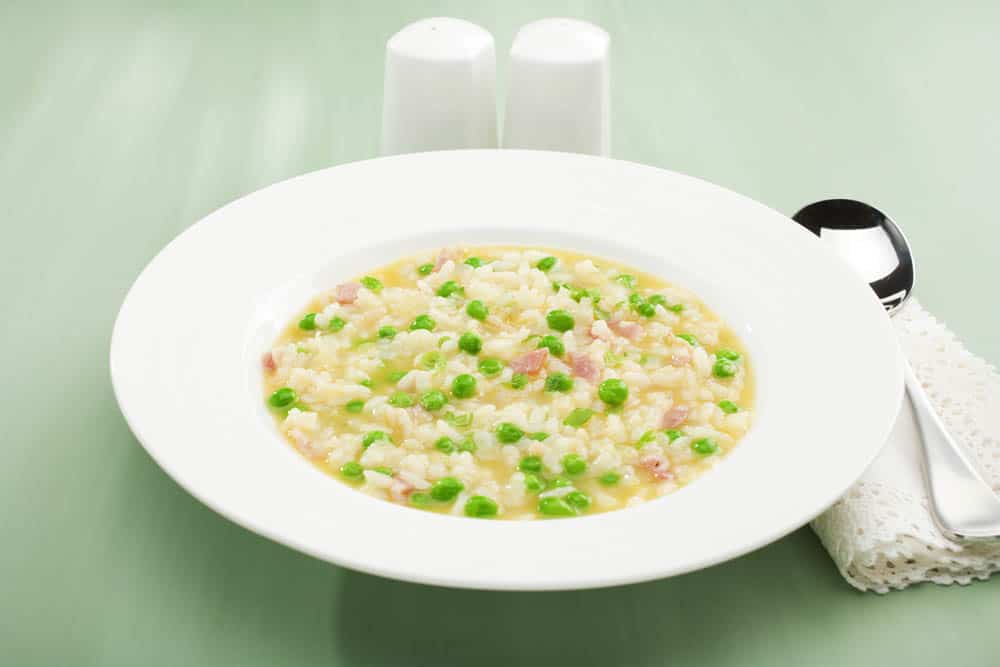 Non è un risotto, non è una minestra: il risi e bisi è una via di mezzo perfetta, cremosa e delicata, simbolo della cucina veneta.
