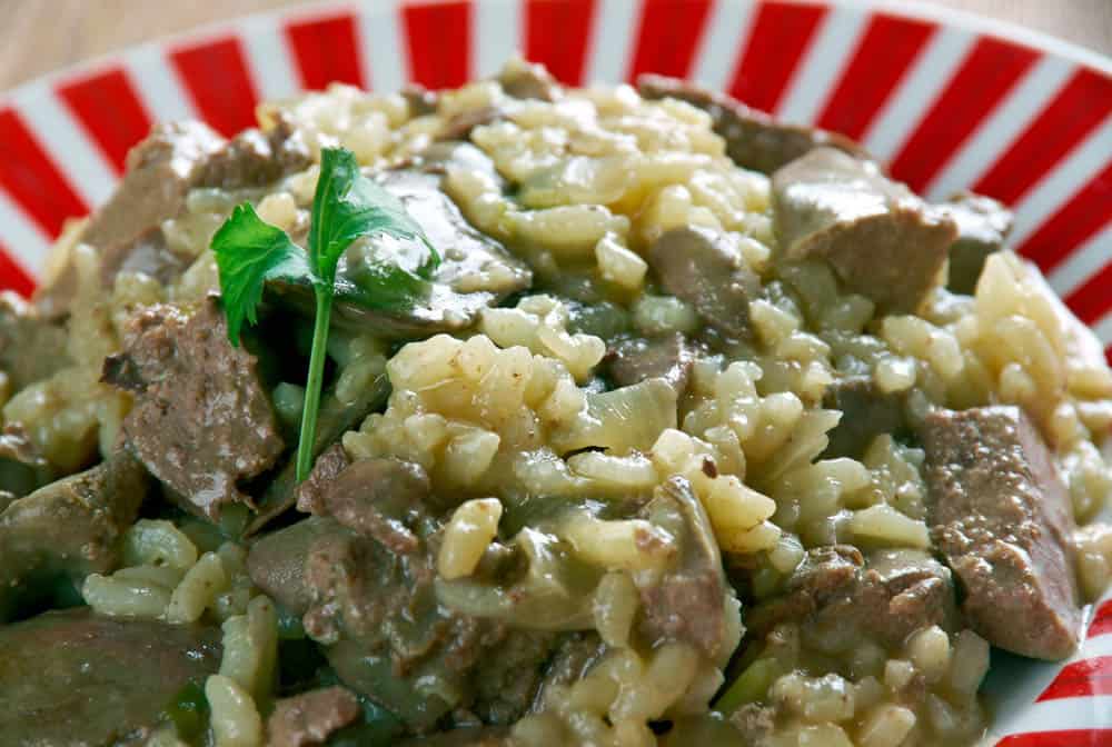 Saporito, corposo e profondamente legato alla tradizione contadina, il riso coi figà — ovvero risotto con fegatini di pollo alla veneta — è un primo piatto classico della cucina veneziana e della gastronomia popolare del Veneto. Preparato con ingredienti semplici come riso vialone nano, fegatini di pollo, verdure e vino bianco, questo piatto racchiude tutta la generosità e l’autenticità della cucina povera veneta.