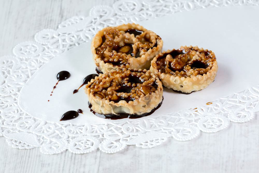 Simbolo di abbondanza e buon augurio, la forma arrotolata delle cartellate richiama la corona del Bambin Gesù o le fasce che lo avvolgono nella culla. Per questo motivo, in Puglia non c’è Natale senza un vassoio di cartellate lucide e dorate pronte da offrire ad amici e parenti.