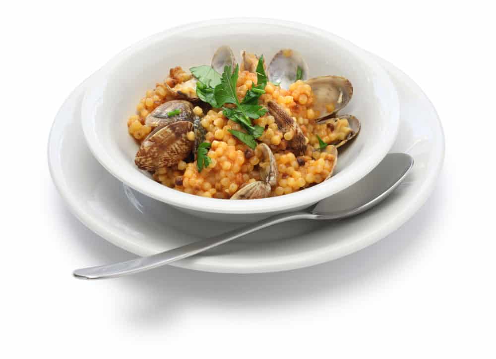 La fregola con arselle è un primo piatto tipico della cucina sarda, composto da fregola, piccola pasta di semola simile al cous cous, che viene cotta in un brodo composto dall’acqua di rilascio della cottura delle vongole e salsa di pomodoro.