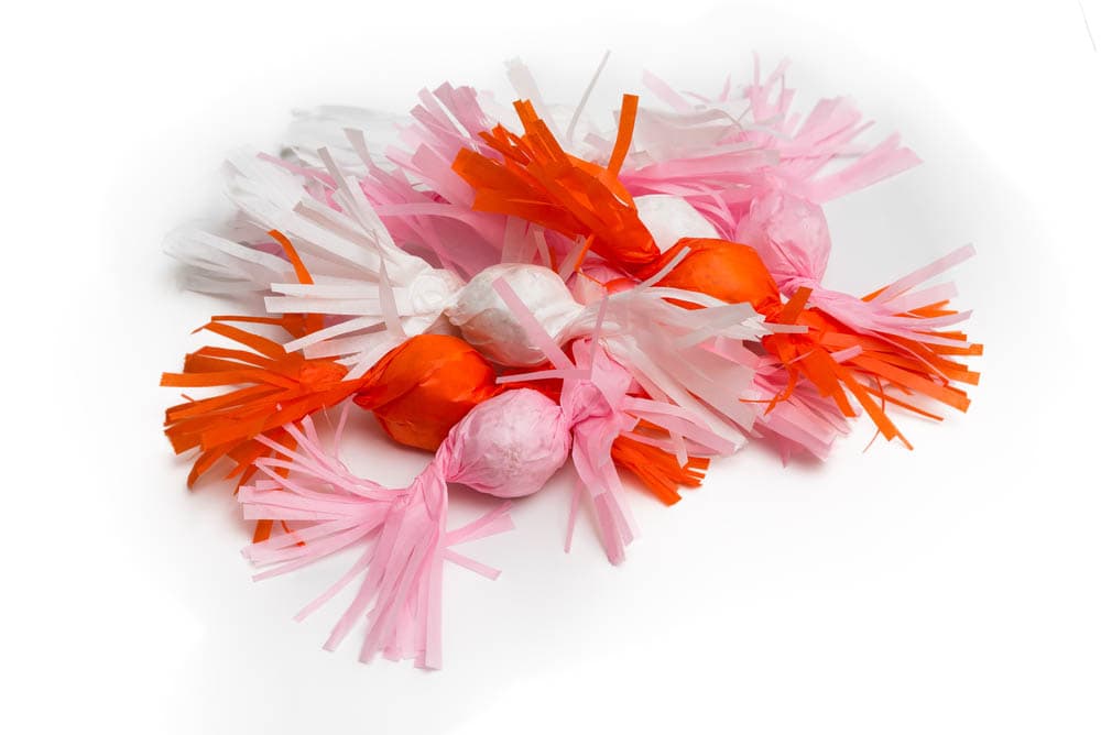 Confeziona i gueffus con carta colorata per alimenti e conserva in contenitore chiuso in luogo fresco de asciutto.