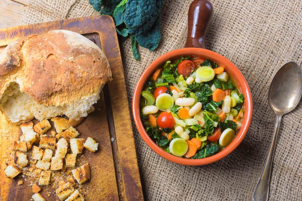 È una preparazione simbolo della cucina povera, in cui nulla andava sprecato: la zuppa veniva cucinata il venerdì o il sabato, poi lasciata riposare e “ribollita” il giorno dopo, quando diventava ancora più buona. Il suo segreto è proprio questo: il riposo.