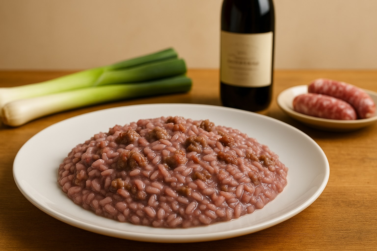 Risotto salsiccia e porri al Sangiovese