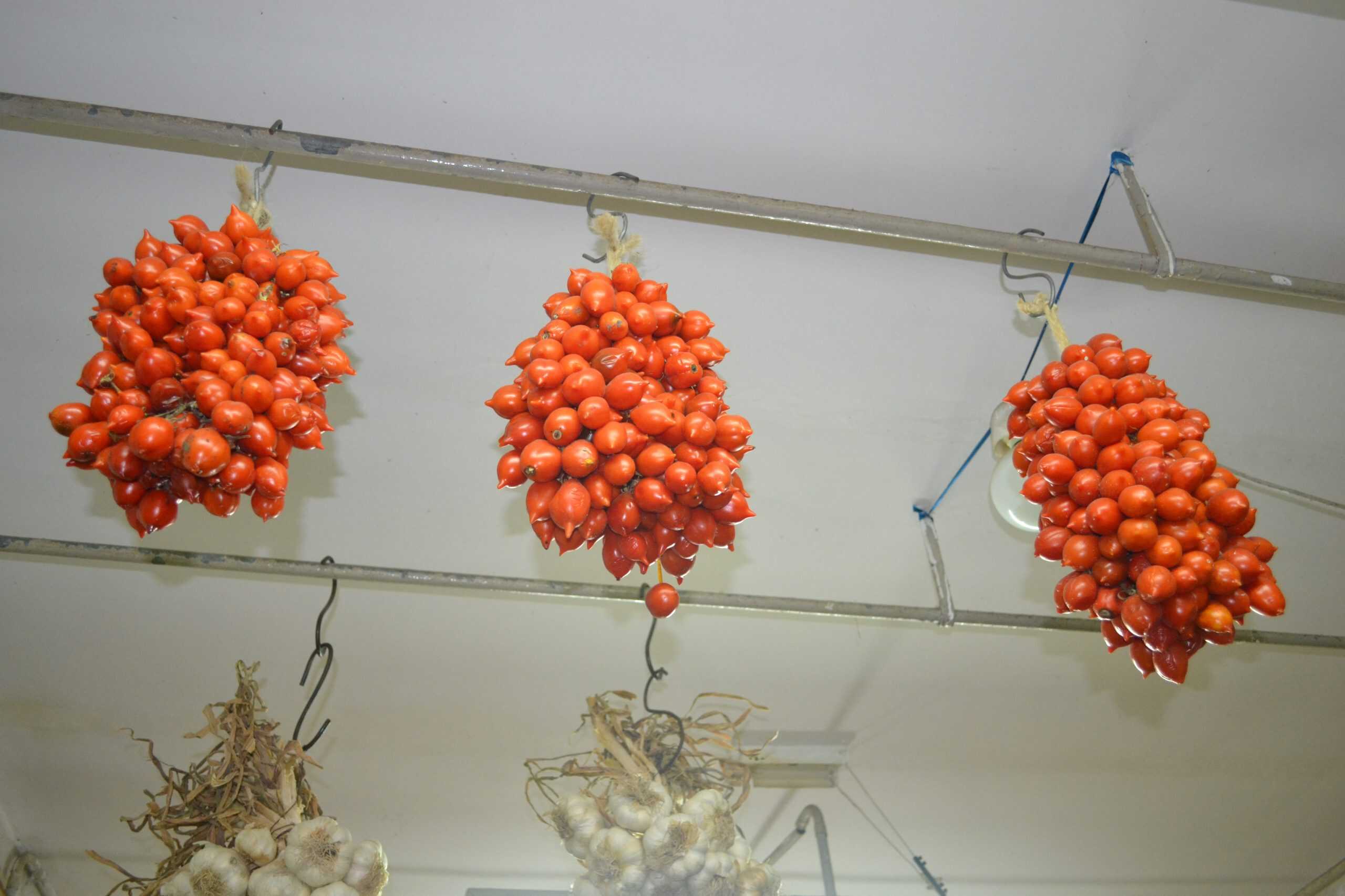 Il Pomodorino del Piennolo del Vesuvio DOP è un prodotto tipico campano e una delle più antiche e conosciute specialità ortofrutticole del territorio. Tutelato dal marchio DOP e a lungo protetto da un Presidio Slow Food che lo ha salvato dall’estinzione, il Pomodorino del Piennolo DOP vanta caratteristiche distintive uniche. Scopriamo innanzitutto l’origine del nome, che deriva dalla particolare tecnica usata per conservare i pomodori “al piennolo”, vale a dire legati tra loro a grappoli e appesi in luoghi areati per essere pronti all’uso durante tutto l’inverno. Per facilitare questo processo la raccolta è infatti condotta tagliando grappoli interi e non completamente rossi, con circa il 30% dei pomodorini ancora in fase di maturazione.