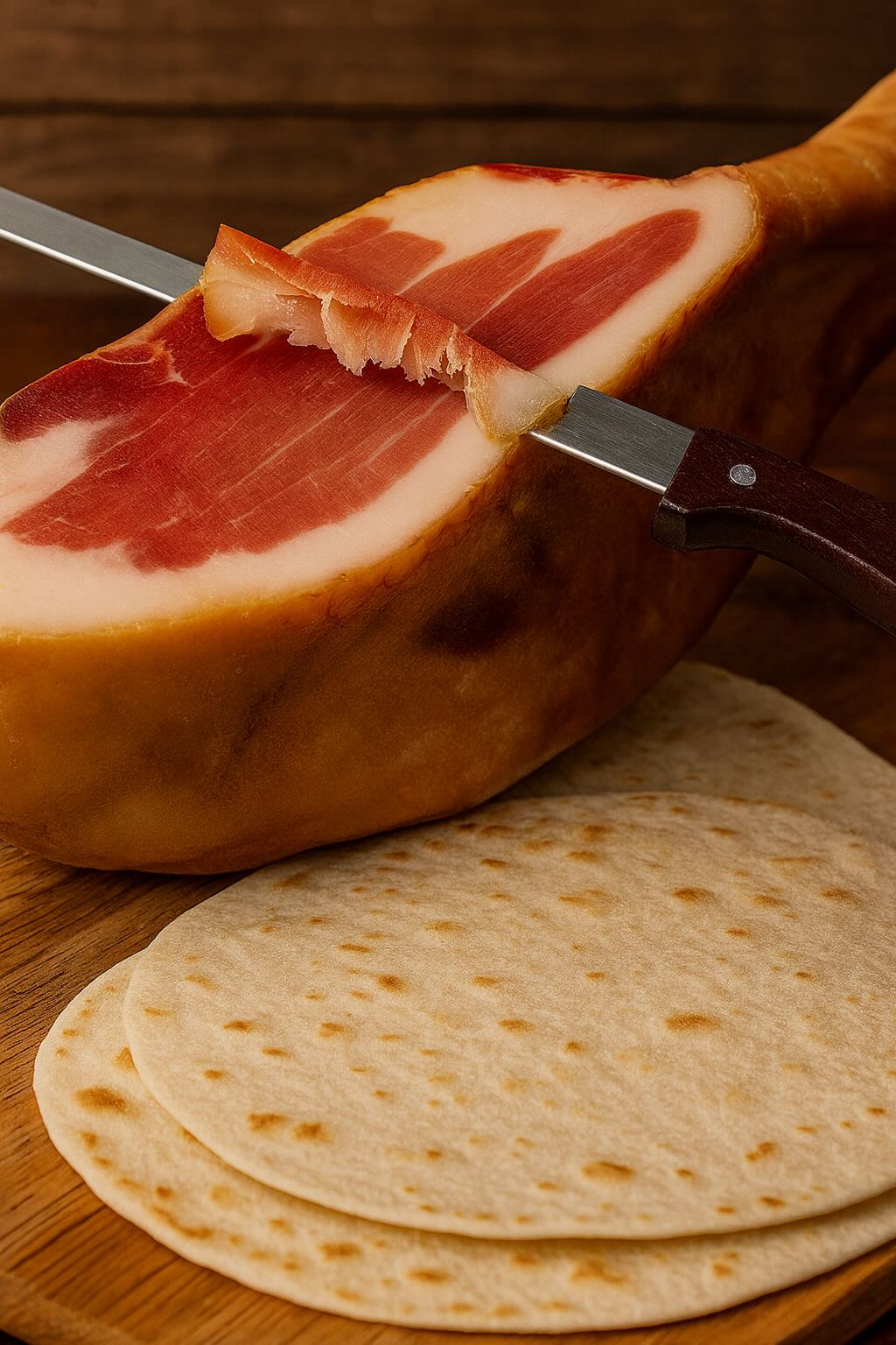 In Romagna il prosciutto è da sempre un compagno inseparabile della piadina, tanto che un famoso detto dialettale recita: “pida e parsot, figa por tot” – ovvero piadina e prosciutto come simbolo di convivialità e piacere a tavola.