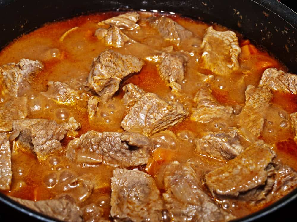 Porta a bollore una pentola riempita a 2/3 di acqua, aggiungi il sedano, la carota, una cipolla e quando riprende il bollore immergi la carne di manzo. Regola il fuoco al minimo e lascia cuocere 3 ore circa, fino a quando la carne sarà morbida e cotta a puntino.