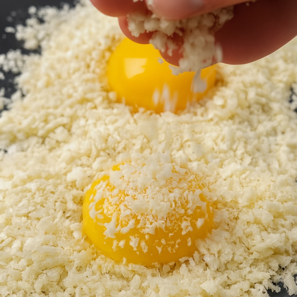 - Usa sempre uova freschissime: la membrana vitellina è più spessa e tiene il tuorlo compatto. Con uova vecchie il tuorlo è più piatto, la membrana cede e rischia di rompersi già nel panko.